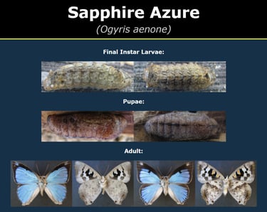 Petite anecdote : Saphir Azur, me vint intuitivement. Quelques jours plus tard, je réalise qu'il s'agit d'une dénomination pour une espèce de colibri bleu et d'un papillon. Deux symboliques qui ont bien leur place !